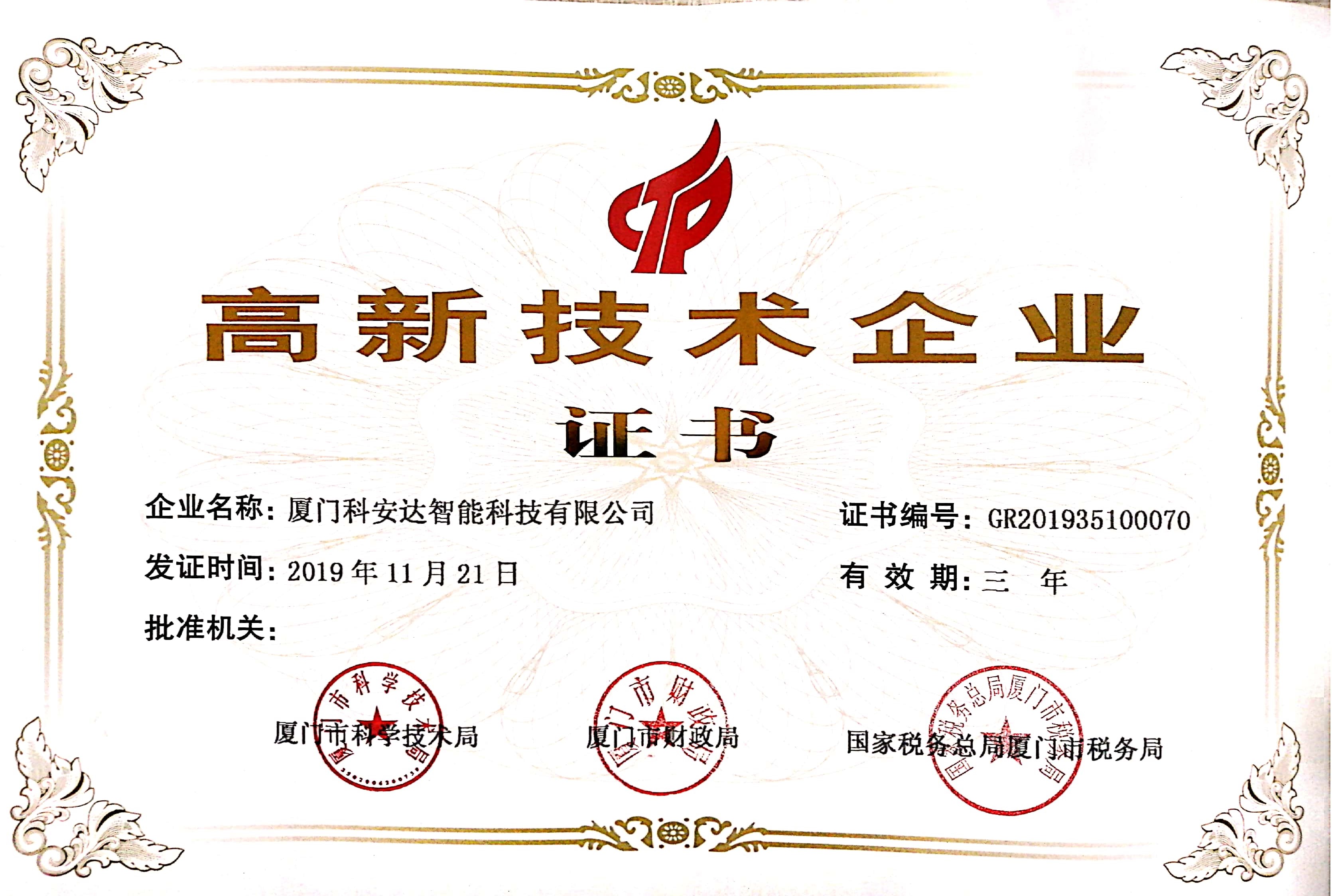 高新技術(shù)企業(yè)證書